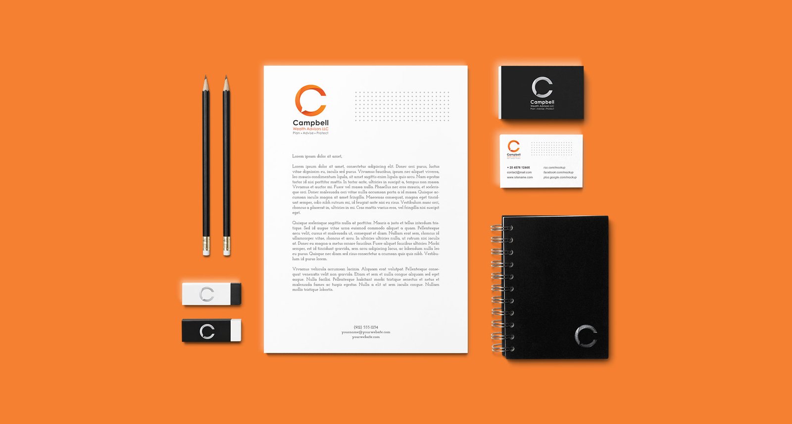 We created this simple yet catchy logo, which won many accolades. This was carved out from a combination of "C" (first letter of Campbell) and a Speak Bubble which represents their advisory services. The Orange color stands for success, determination etc.